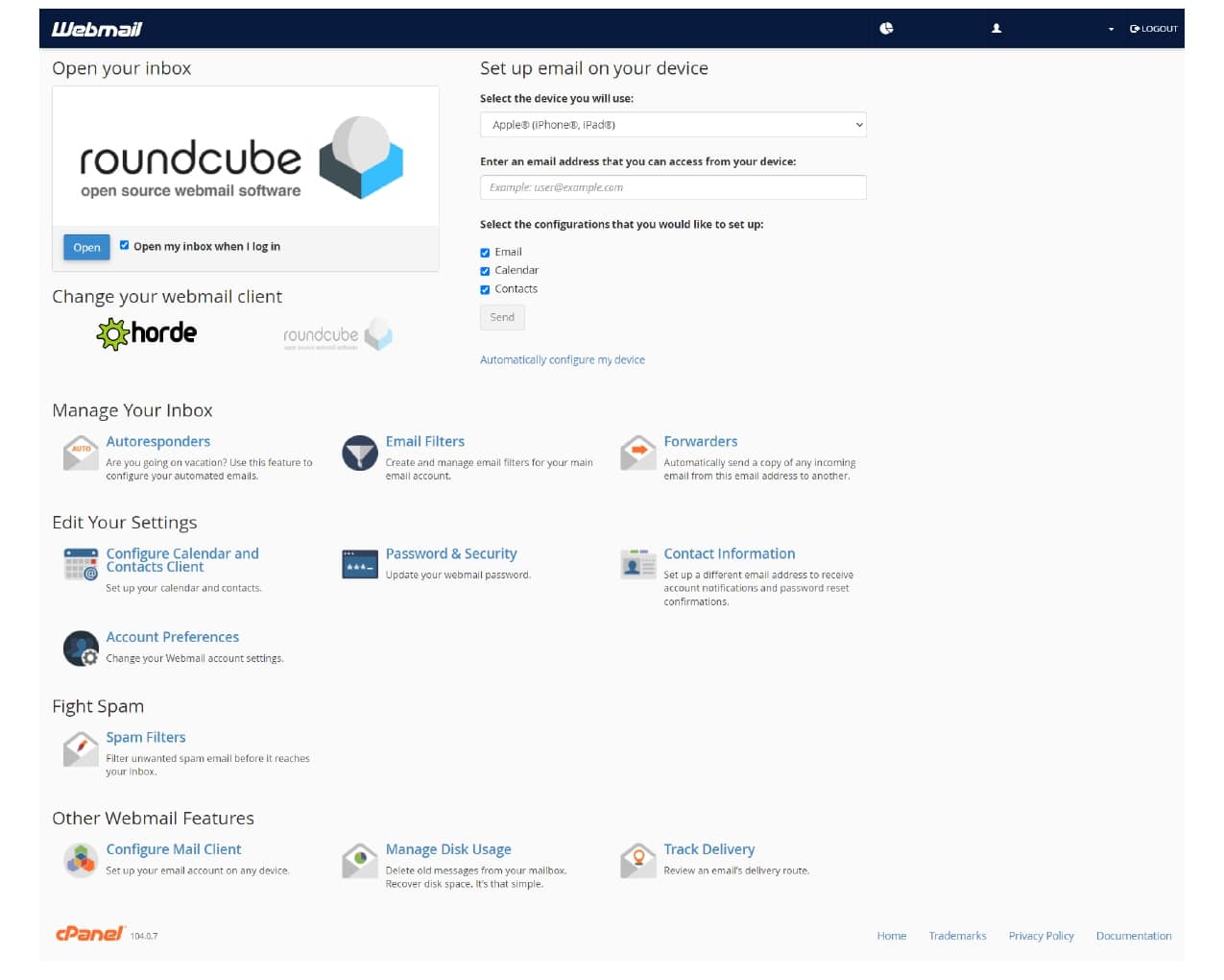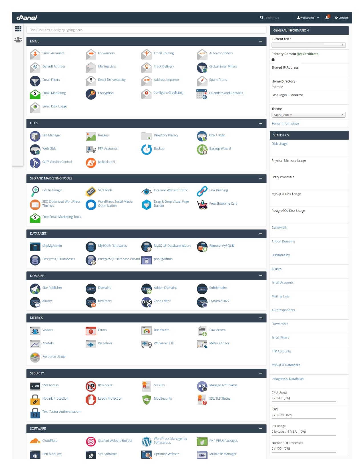 Веб хостингот вклучува: CPanel за менаџмент Управувајте со вашиот веб-сајт и придружни услуги како е-пошта и под-домени со едноставноста и леснотија на cPanel.